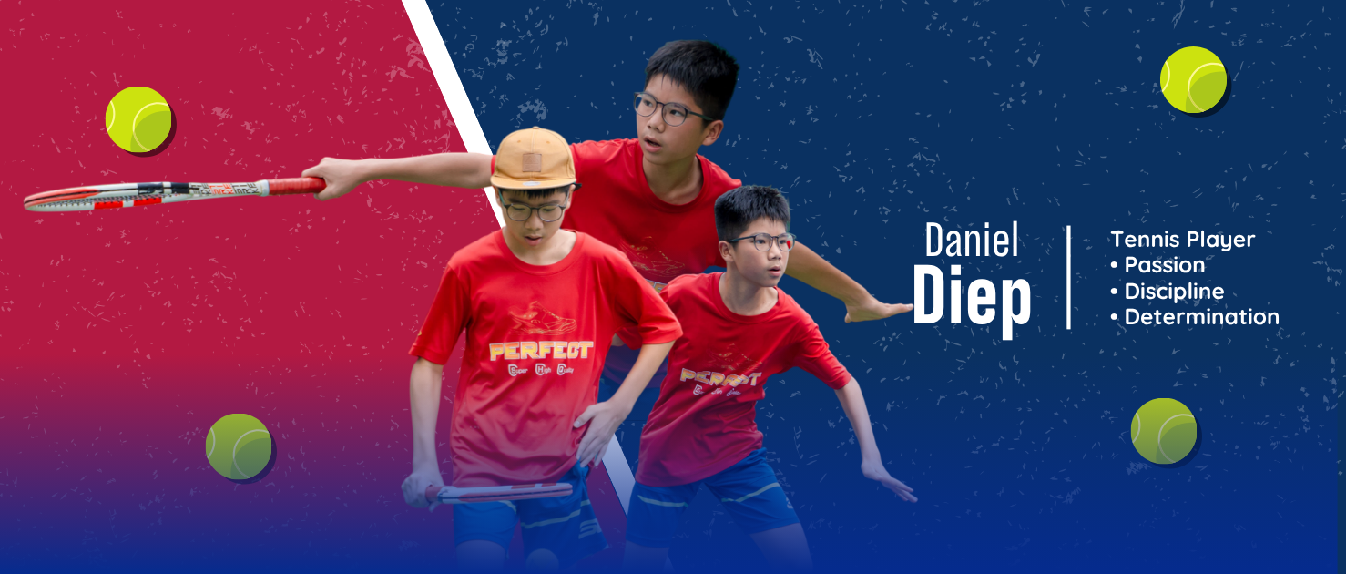 My name is Daniel Diep, a 9th-grade student at Canyon High School in Anaheim, California. Before moving to the U.S., I studied for eight years at Vstar School in Ho Chi Minh City. I started playing tennis at the age of six, trained toward competitive play, and earned several local awards in Vietnam as well as multiple club-level titles at various high schools in the U.S.